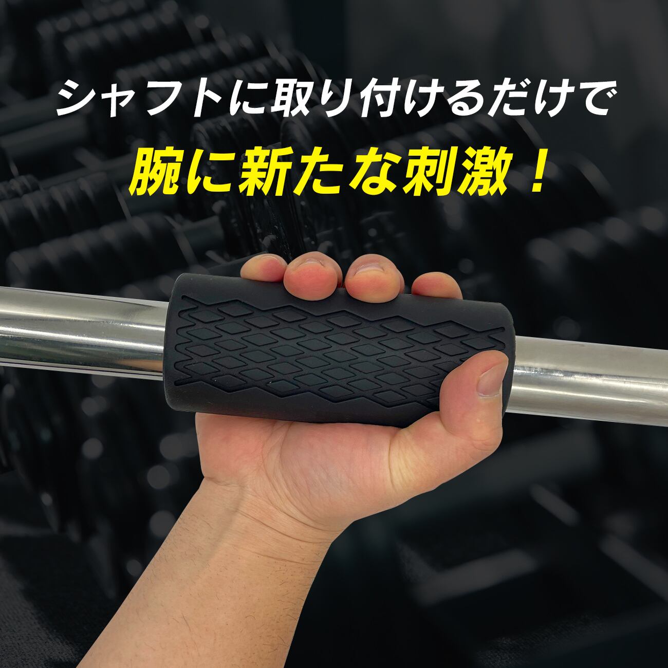 ●ダンベルグリップの効果(1):ダンベルやバーベルに取付、持ち手を太くすることで、握る力が強くなるため、握力・前腕が強化されます。