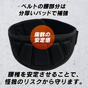 ●スクワット、デッドリフトなど腰に負担がかかるトレーニングを行う際にしっかりサポートします。